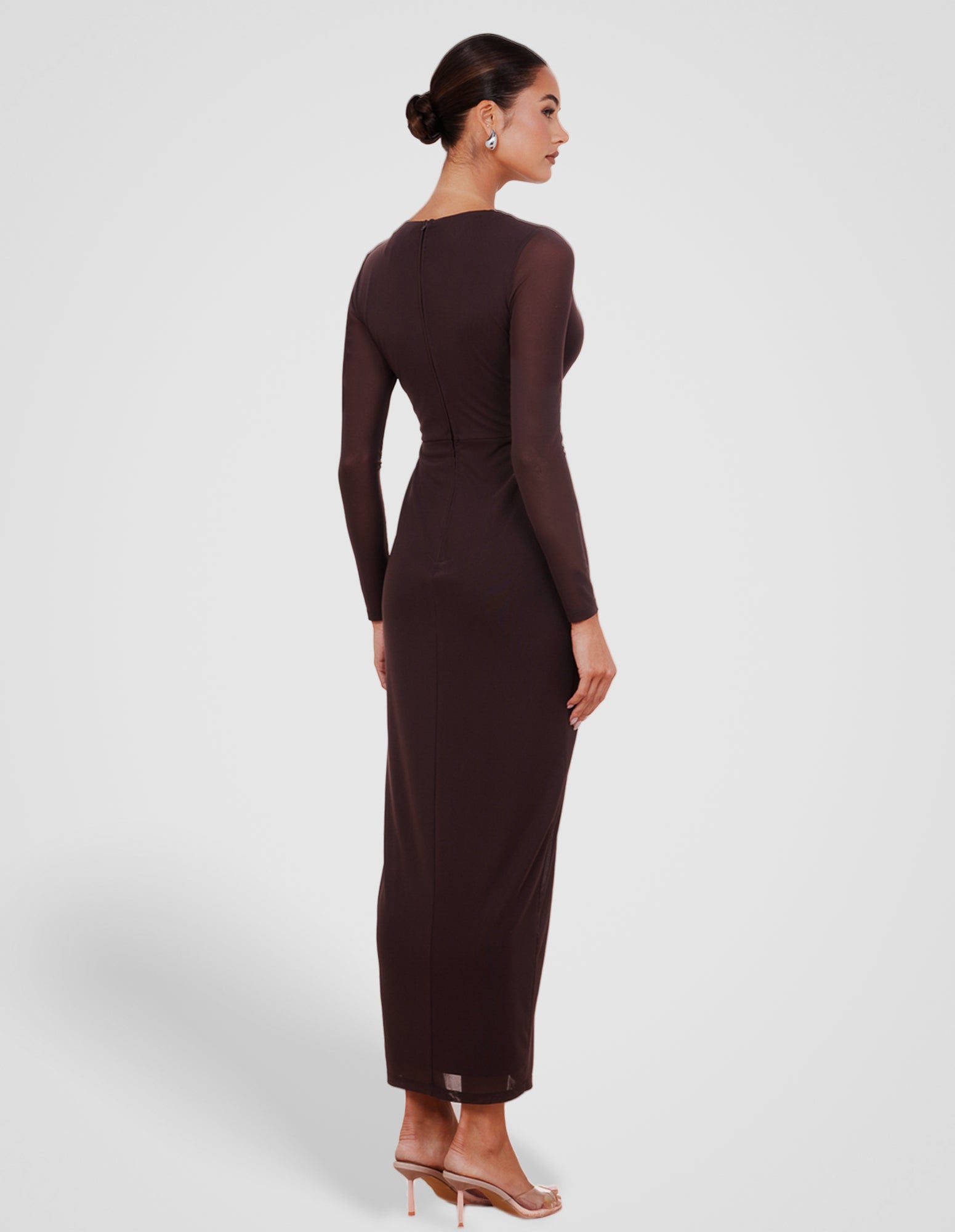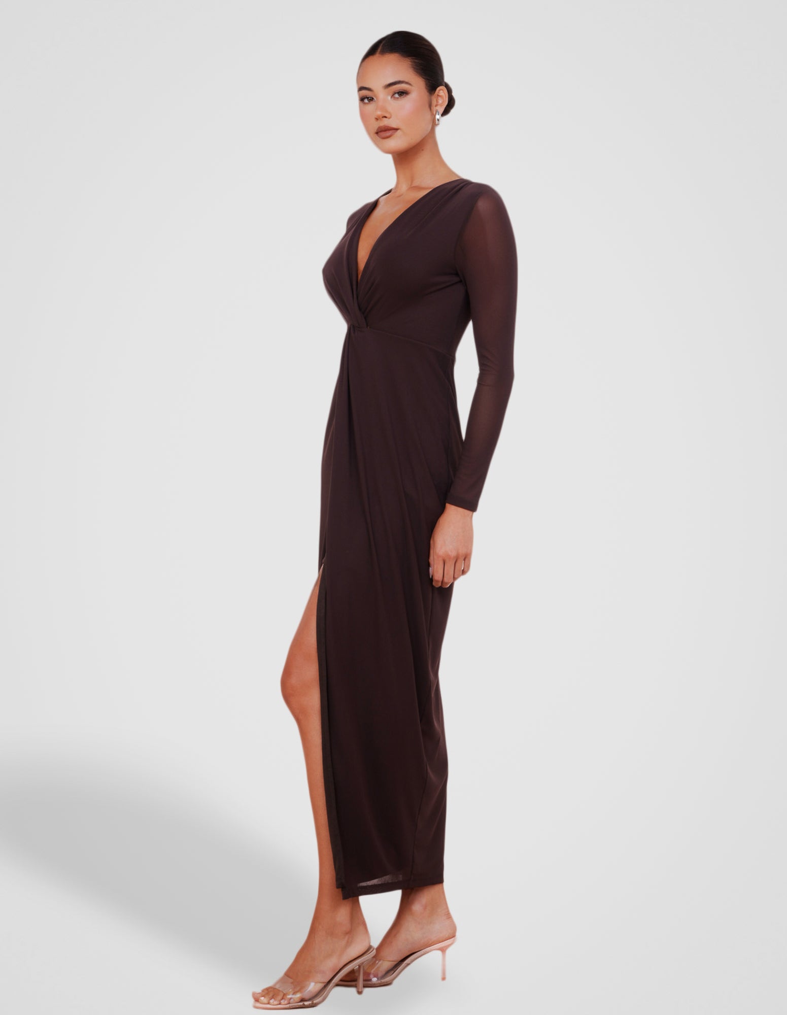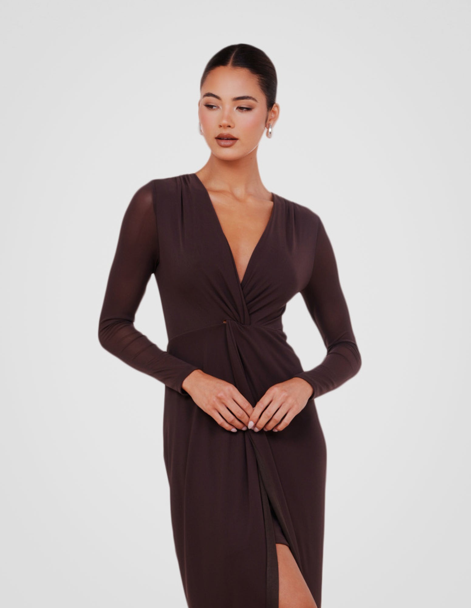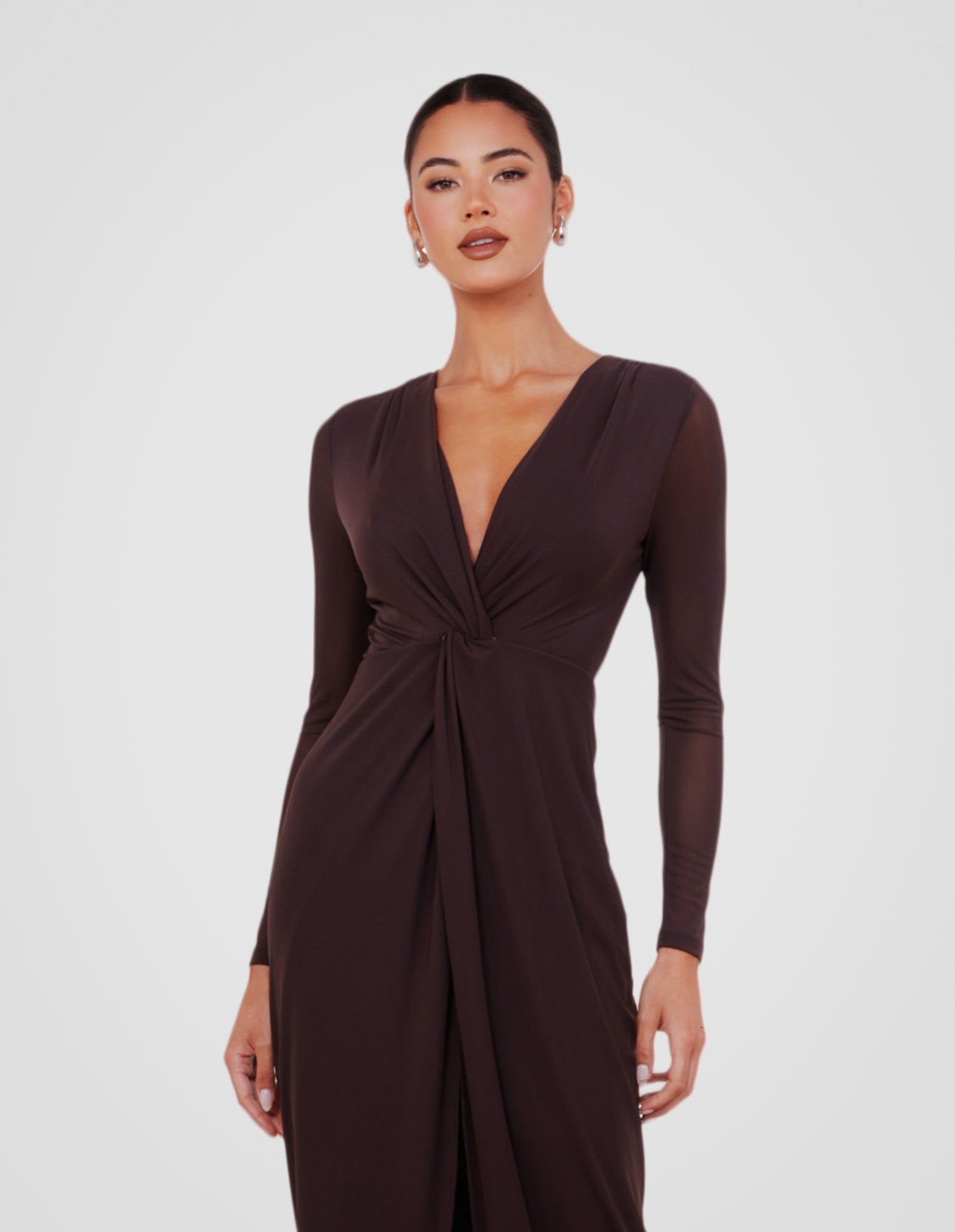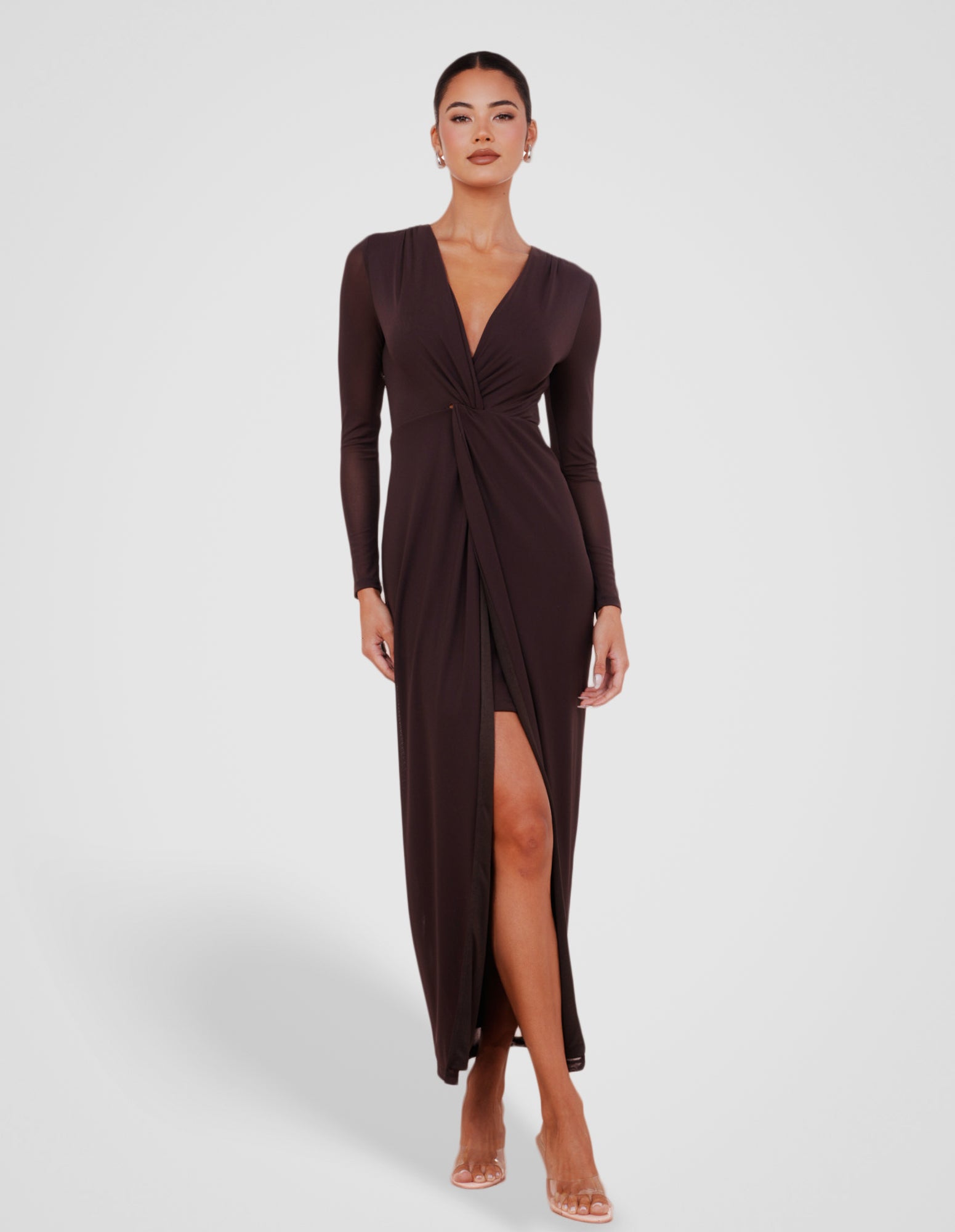- Length: 138cm (size AU 8)- Luxurious buttery fabrication in a brown hue; high stretch